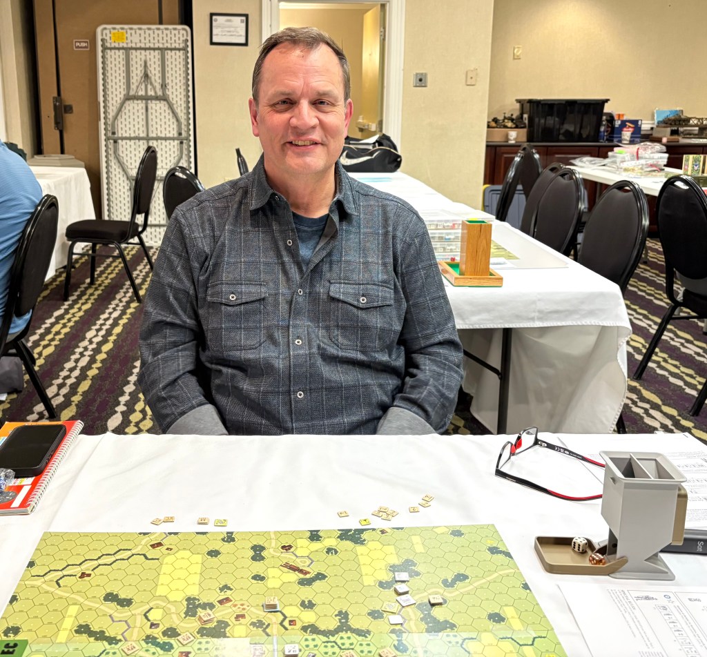 I had a great time at the event; pleasant opponents and five scenarios that were new to me. There were several good restaurants within walking distance of the hotel. My Friday meal of jambalaya was so good that I brought half of it back to my room (which had a fridge and microwave) and ate that on Saturday instead of the free pizza offered by the organizers. Ralph MacDonald made wood coasters for everyone that were personalized with each playerโs name and whatever image they had requested before the tournament. For a change, I participated in the Saturday night bull session since I wasnโt playing Sunday. That was fun too.